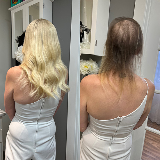 Hair loss replacement extensions is available for those experiencing any form of hair thinning or hairloss issue.